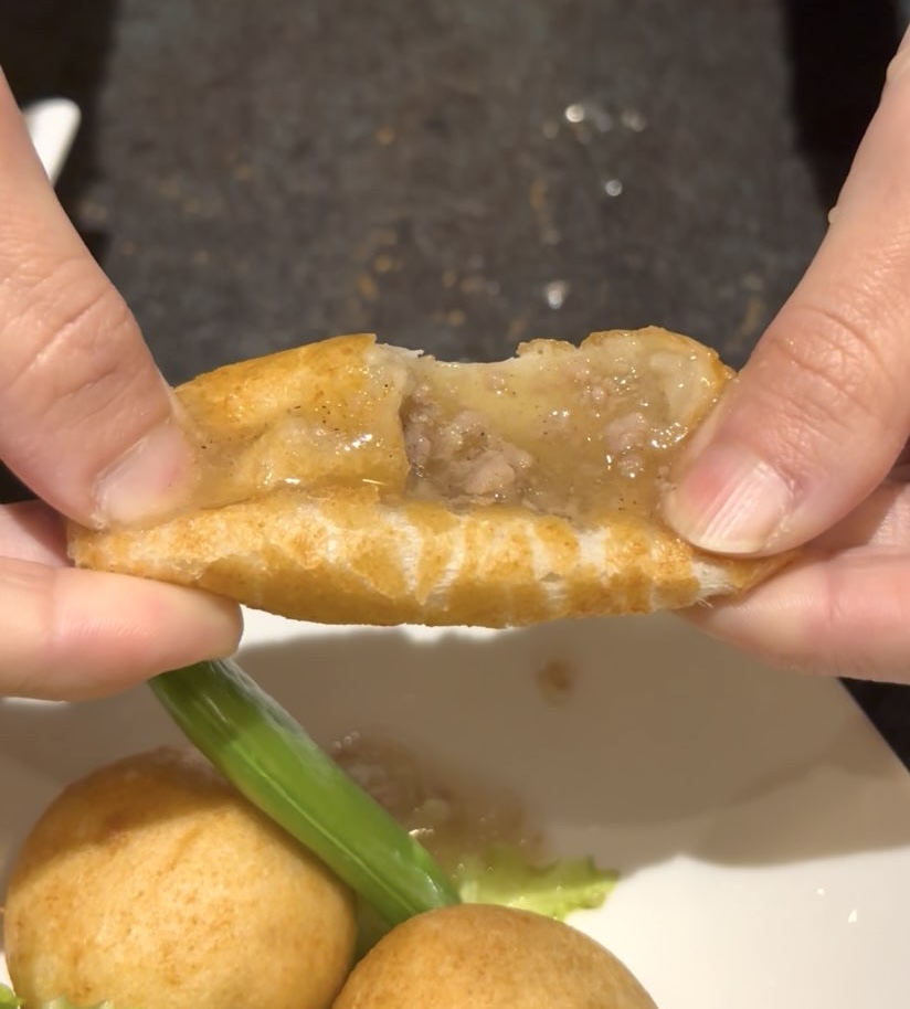 肉汁めちゃくちゃ入ってる、揚げ団子小籠包みたいな初めて食べるグルメ。