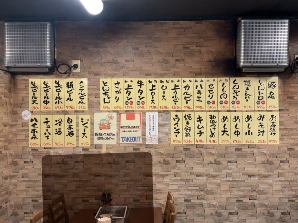 焼肉系のメニューは少な目で、シンプルにこの壁にあるやつ!